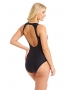 • High neckline and seam down the back provide a close aqua-dynamic fit to reduce drag
