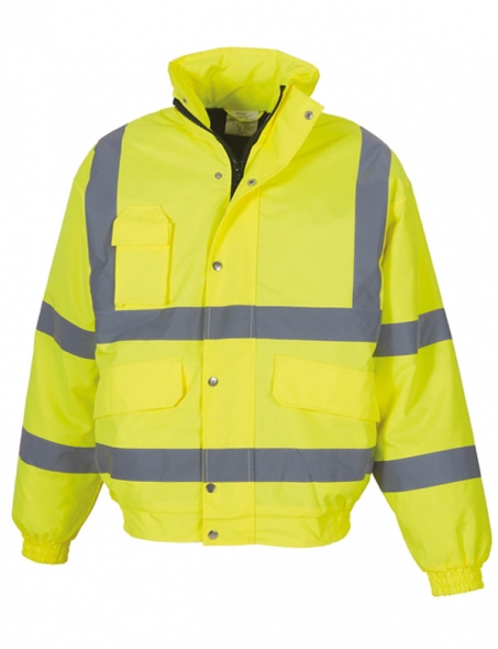 Classic Hi Vis bomber jacket with Nylon diamond quilted lining and polyester padding.